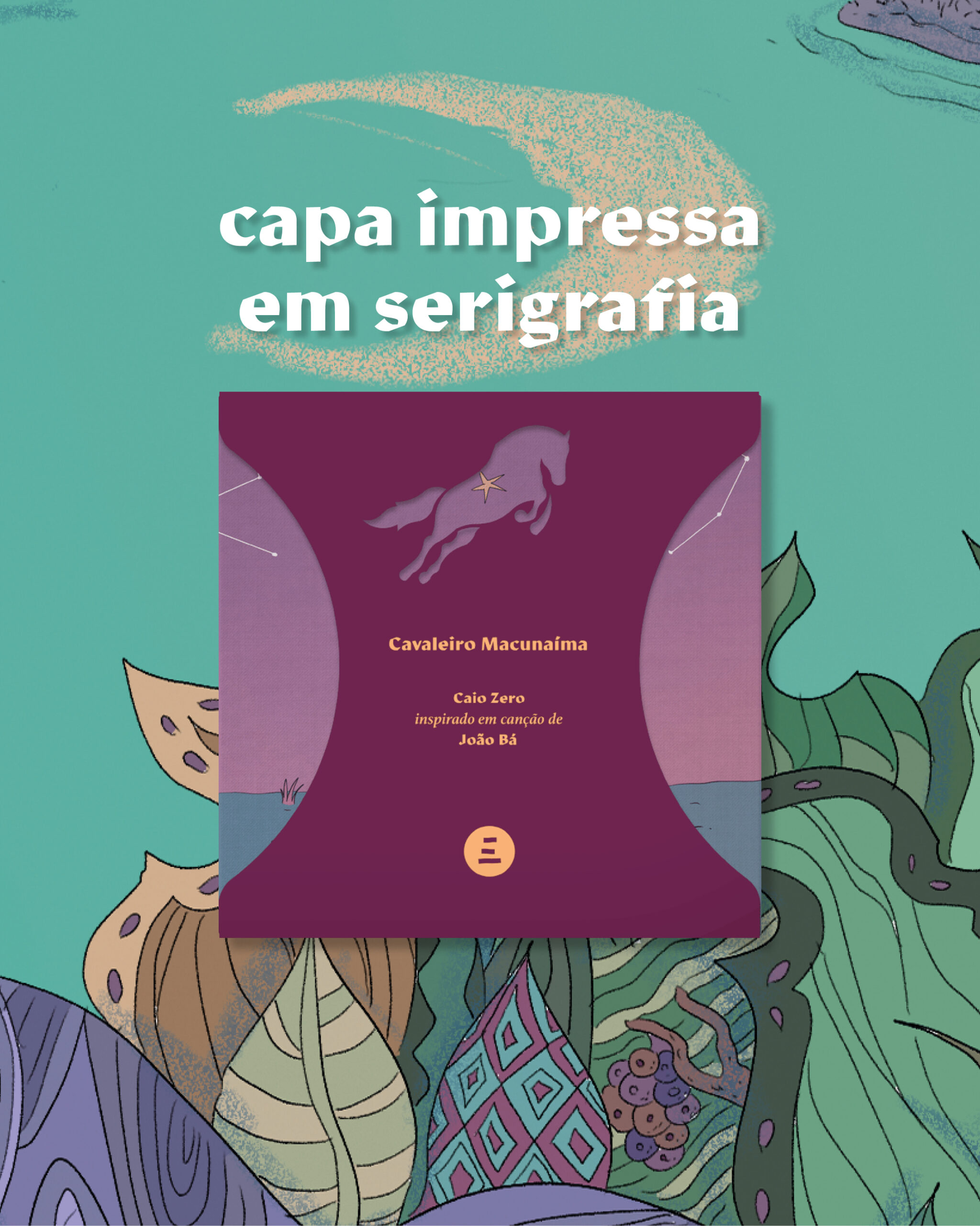 Palavras de arrepiar, e isso é apenas o começo. Os versos inauguram a aventura narrada por João Bá em Cavaleiro Macunaíma. Passando pelo rio São Francisco e pelo Araguaia, ele cavalga as palavras em direção à Chapada Diamantina. A canção, como é comum na obra do compositor, é repleta de imagens brasileiríssimas — aqui, evidentemente, está em destaque o Macunaíma de Mário de Andrade, o amálgama da formação brasileira. A canção de Bá faz um convite a trilhar essa geografia fantástica e, como consequência, a nos perdermos pelos caminhos da imaginação. O artista Caio Zero atendeu ao chamado e o resultado é este Cavaleiro Macunaíma ilustrado.